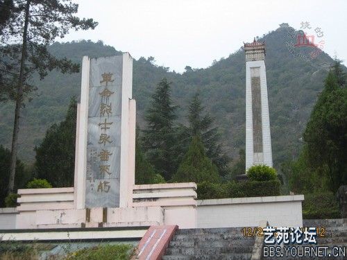 烈士塔矗立于高山之巅,高16.3米,塔身正面镌刻“革命烈士永垂不朽”八个大字,塔身两侧引刻毛泽东题词朱德题词。